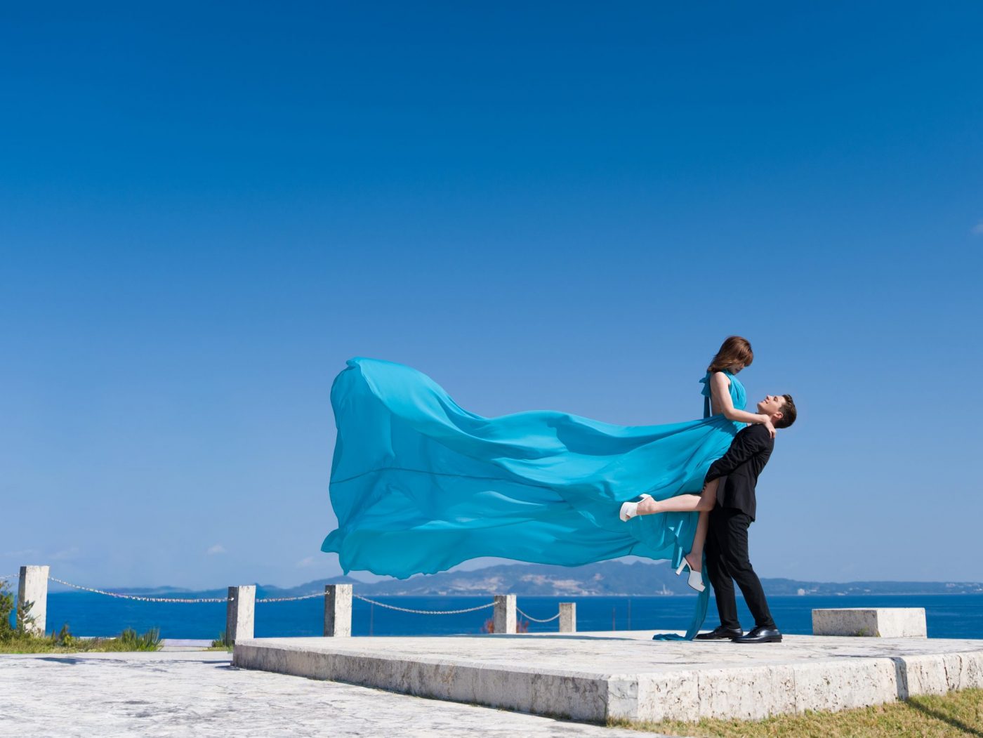 全14棟、東シナ海を望む高台に佇む全室プール付きスイートヴィラ&オーベルジュ「オリエンタルヒルズ沖縄」(沖縄県恩納村)は、2026年2月14日(土)より、極上の滞在と絶景に映えるフライングドレスでの撮影が叶う「フォトウエディングプラン」の販売を開始します。